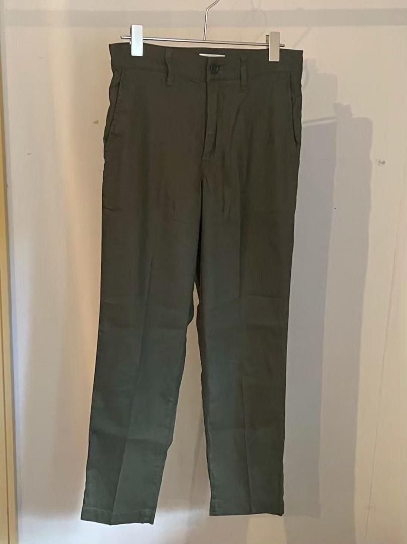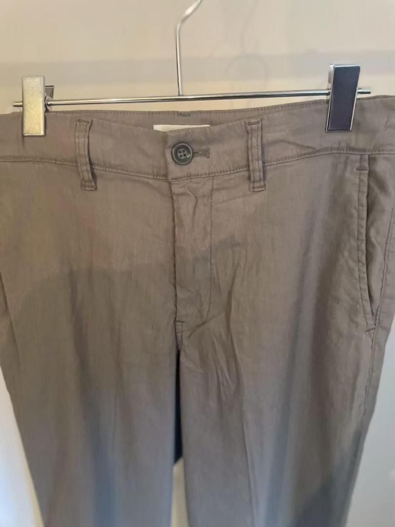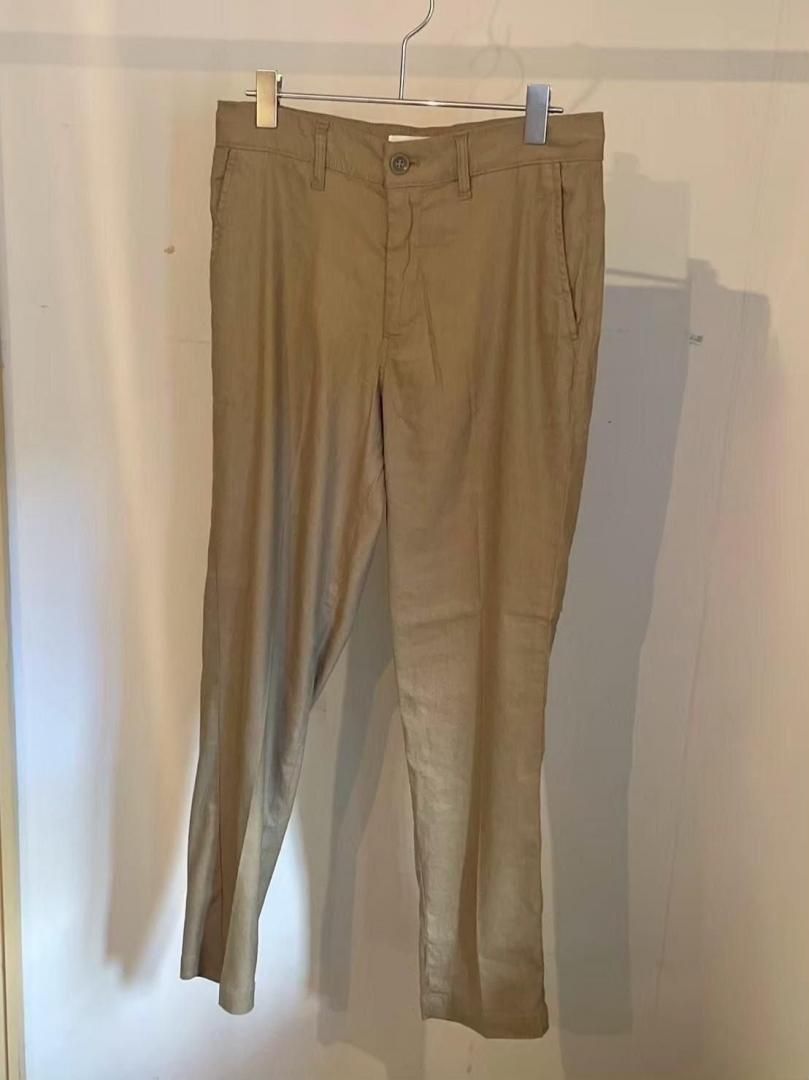 リネン50%・レーヨン48%・ポリウレタン2%をブレンドしたリネンストレッチ生地。リネンのドライな風合いとレーヨンのドレープ感により、程良い光沢感と軽やかな肌ざわりを実現。