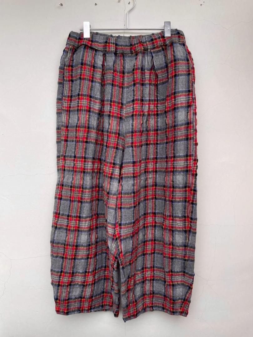 ウールコットンチェック ワンタックバギーパンツ